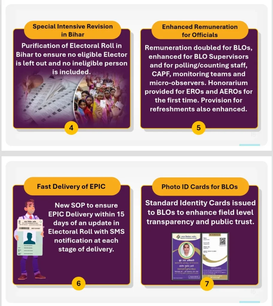 मुख्य चुनाव आयुक्त ज्ञानेश कुमार ने ने कहा कि इस बार बिहार के विधानसभा चुनावों के लिए पहली बार बूथ लेवल ऑफिसर्स (BLO) को नई दिल्ली में ट्रेनिंग दी गई है. मुख्य चुनाव आयुक्त ने कहा कि इस बार के चुनाव में 90,712 बीएलओ तैनात रहेंगे. इसके अलावा 243 ईआरओ, 38 DEOs हर पल मौजूद रहेंगे.
