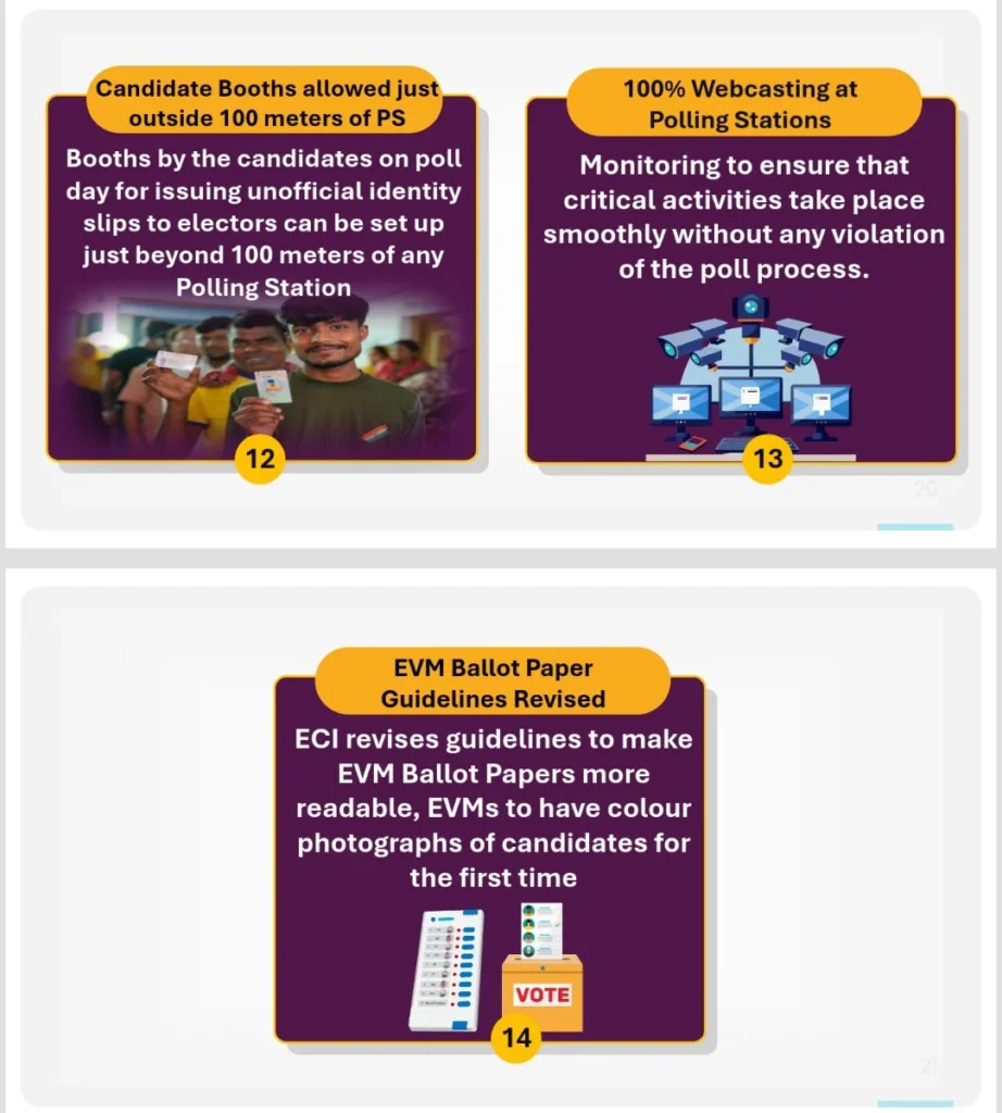 मुख्य चुनाव आयुक्त ने बताया कि इस बार उम्मीदवारों को पोलिंग स्टेशन के 100 मीटर के दायरे में अपने बूथ लगाने की भी मंजूरी दी गई है. कैंडिडेट्स के बूथ पहले मतदान केंद्र से काफी दूर लगते थे. इससे वोटरों और एजेंट्स को काफी परेशानी होती थी.